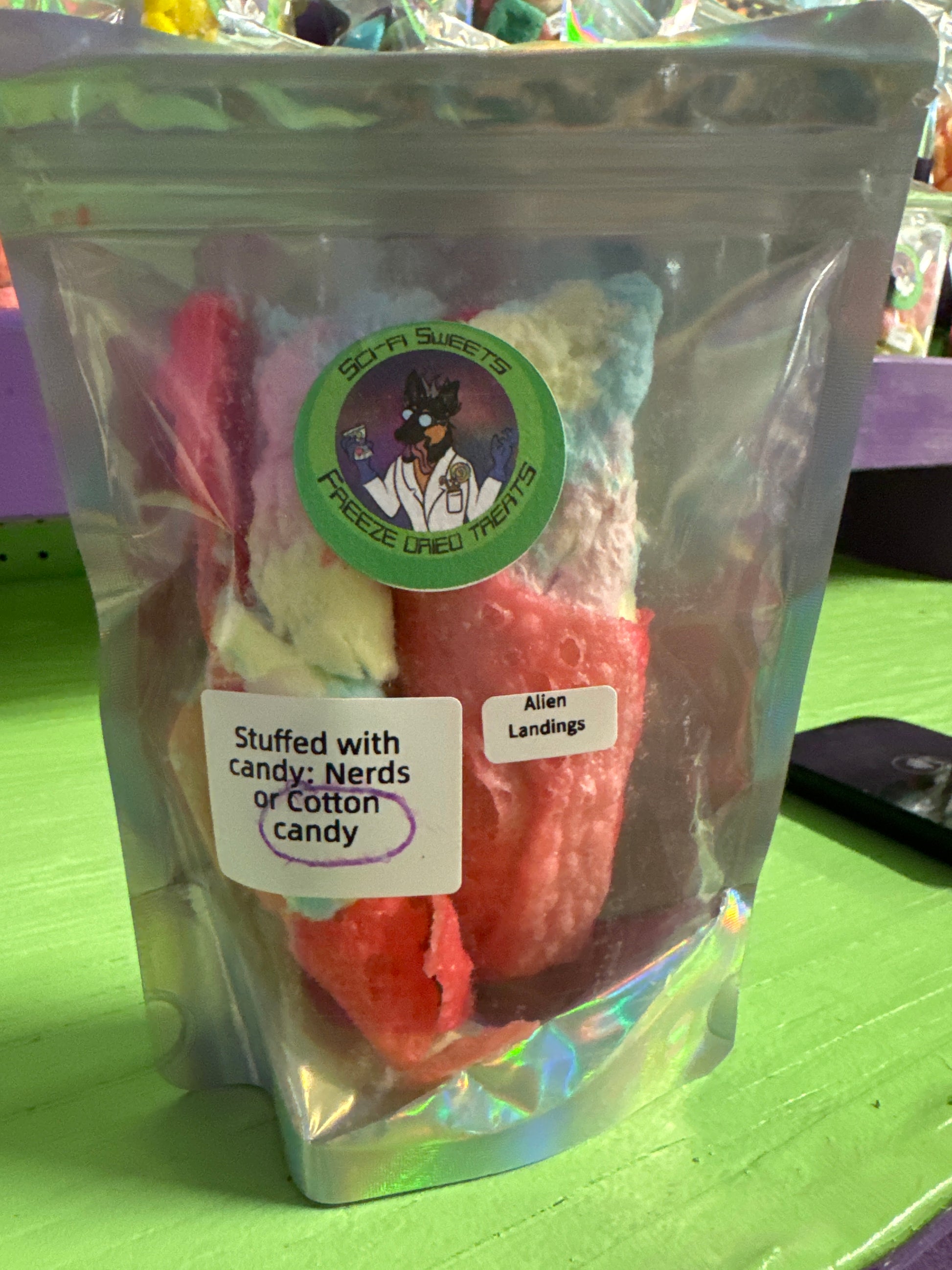 Prepare for snack time to get abducted by flavor with Alien Landings — our cosmic creation of freeze-dried fruit roll-ups stuffed with fluffy cotton candy or crunchy Nerds candy. Once freeze-dried, these colorful, crunchy explosions become a sweet, tangy, and airy treat that’s as fun to eat as it is to look at. Perfect for parties, gift boxes, TikTok-worthy unboxings, or just satisfying your inner alien. No refrigeration needed — just intergalactic flavor and crunch in every bite!